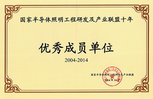 国家半导体照明工程研发及产业联盟十年优秀成员单位