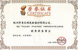 中国照明网中筑天佑杯2014金手指奖优秀供应商